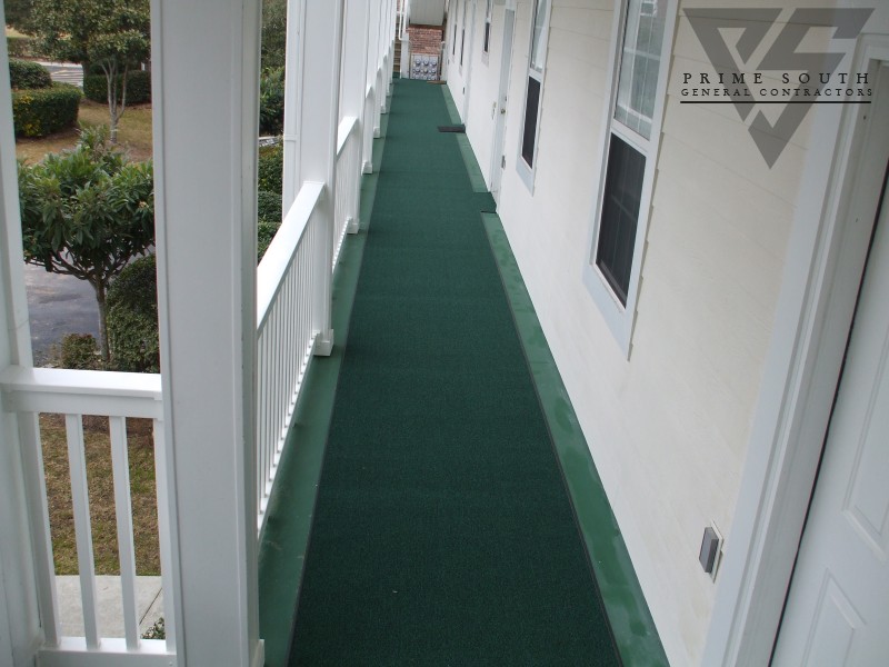 Waterproofed walkways and installed carpet runners